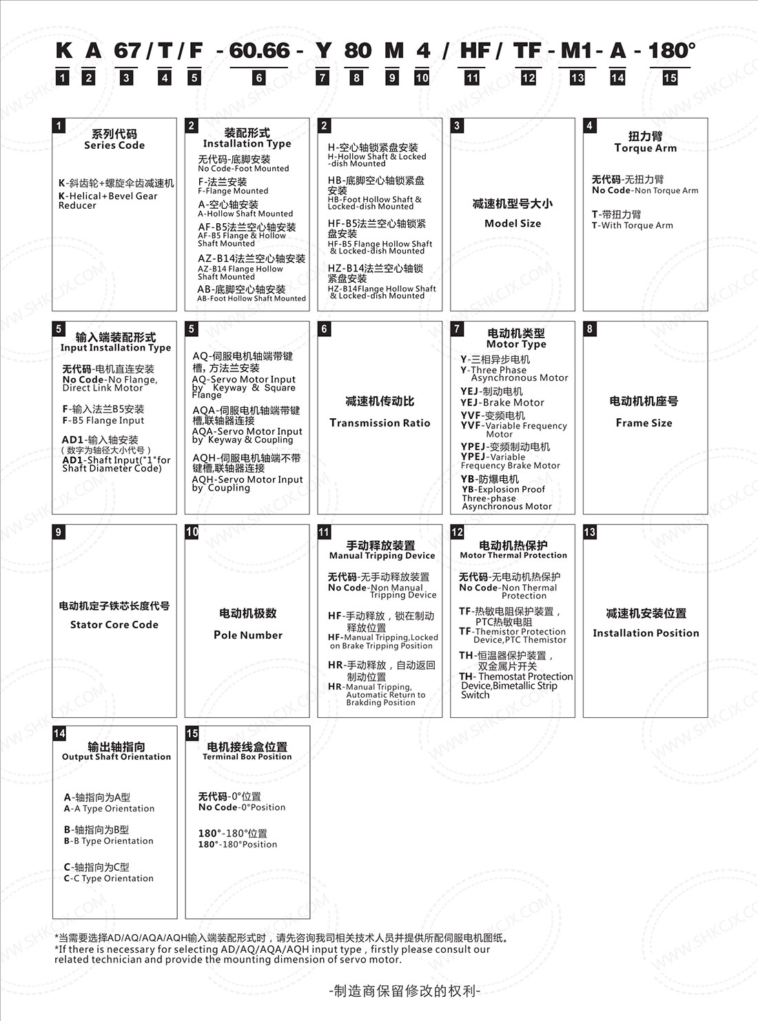 速比范围:基本型5.36~197.37,K系列/R系列组合型可达到32625
